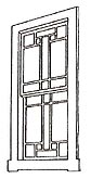 結晶ガラスは模様が型押されたもので、桟組みと合わせたデザインは個性的な表情をしています。寸法の大きなガラスがまだ非常に高価であった時代の、広く光を取り込む工夫です。