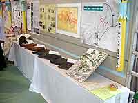 ▲展示の様子:フランス瓦やミシンなどの生活用具のほか、文化住宅の写 真や横浜市内の分布図などをパネルにして展示しました。
