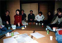席上、自己紹介を兼ねて、今日の掃除の感想や、建物についての思いを各人話してもらいました。最近の住宅にない素材や、間取り、高い天井、洋館と和館の取り合いの不思議なおもしろさ、豊かな縁側の空間等々について様々な感じ方と思い入れを述べ、Kさんもこの建物を大切に使い続けていきたいとの思いを一段とつよくされたようでした。