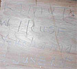 ▲(左)発見した棟札に職人の名前(右)床下の落書き